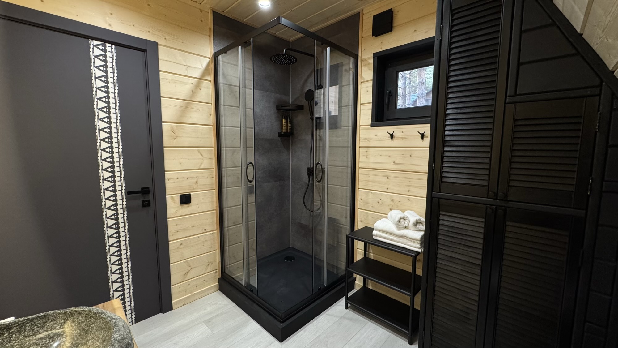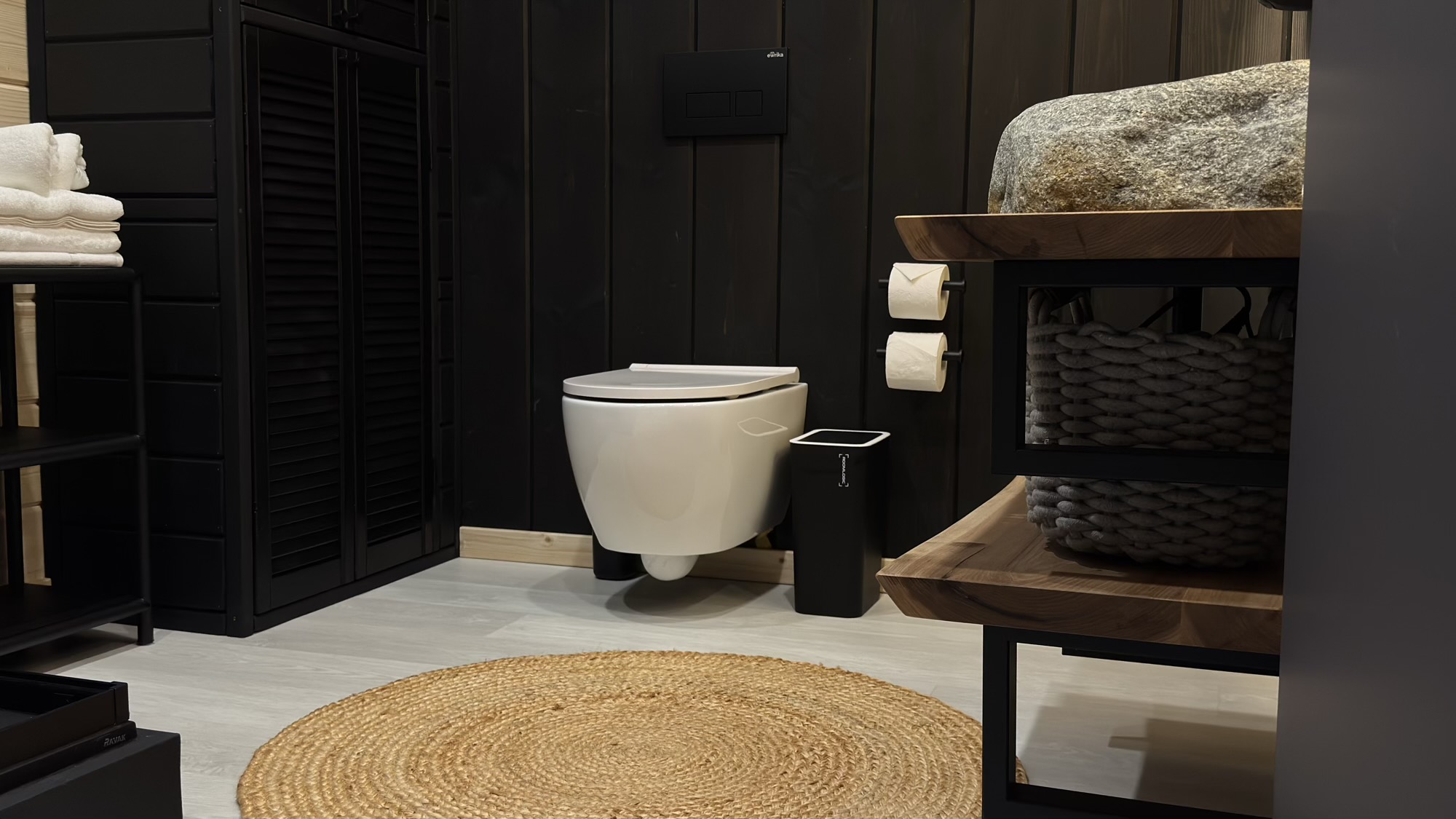• всё необходимое: душ, унитаз, раковина, полотенцесушитель, вешалка и термометр;