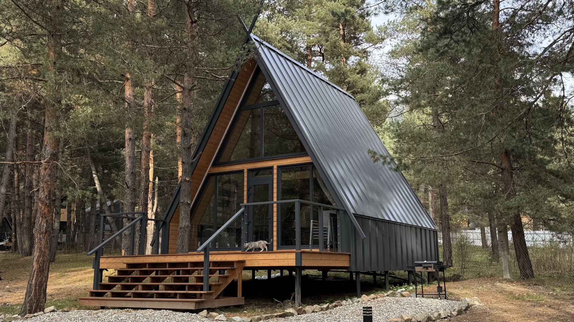 • на улице — мангал и столик для вечеров под звёздным небом.