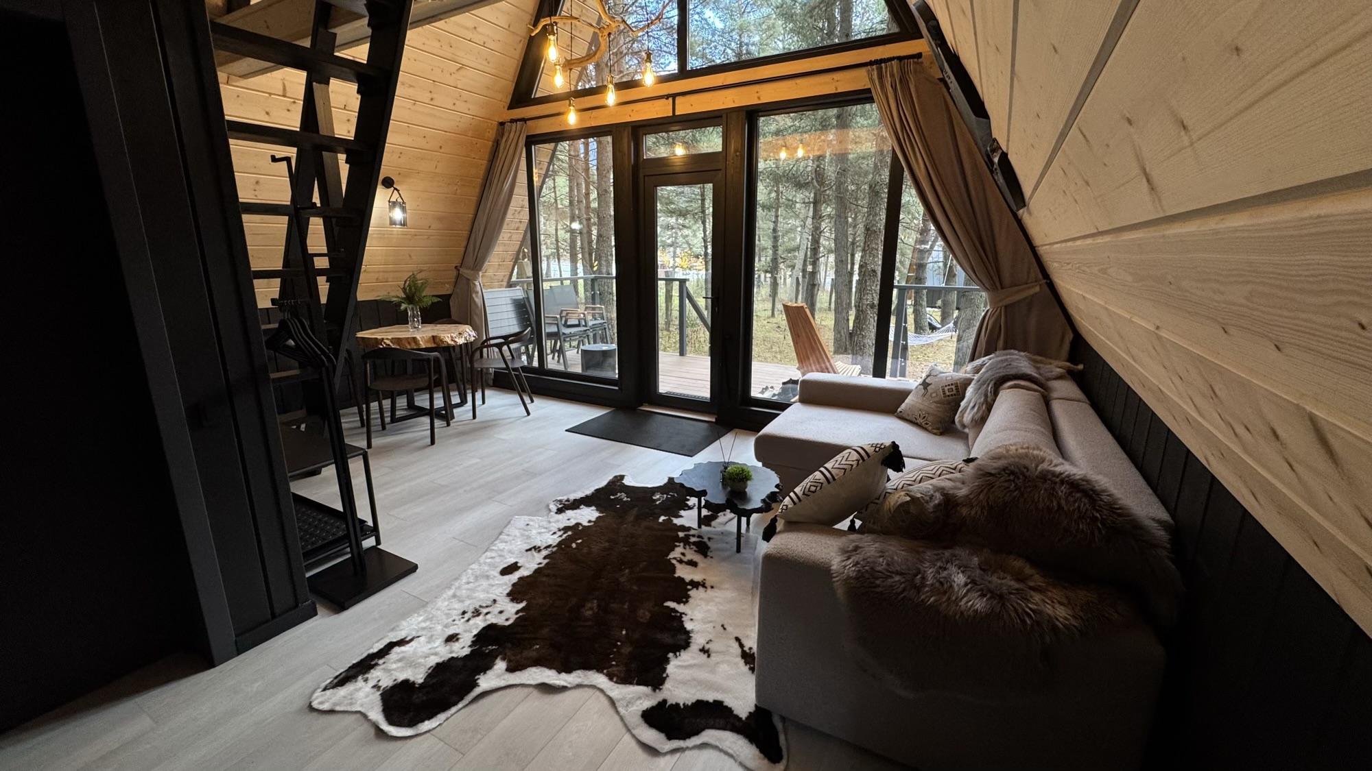 Наши стильные A-фреймы, которые мы называем «чумы», — это сочетание дизайнерского подхода и уюта в самом сердце Архыза. Отель оформлен в эвенкийском стиле, а внутри каждого домика вас ждёт полный комфорт: