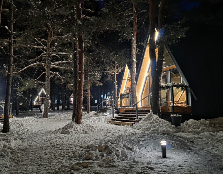 Наши эксклюзивные домики A-Frame, вдохновленные традиционной сибирской архитектурой, создают уютную и теплую атмосферу для вашего отдыха. Каждый домик оборудован всем необходимым для комфортного проживания и идеально подходит как для романтического уикенда, так и для семейного отдыха.